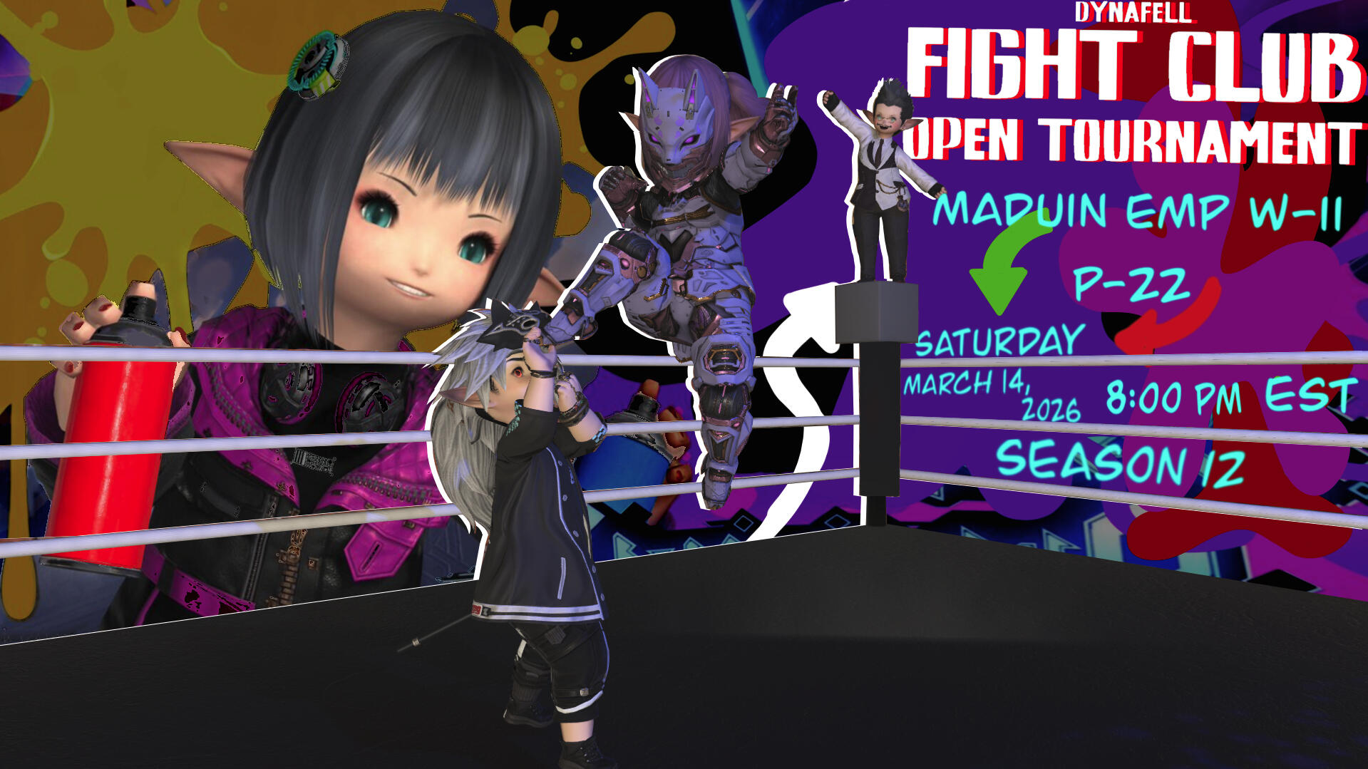 Dynafell is a lalafell community based in Dynamis that hosts the Dynafell Fight Club, an event where fighters from around the region come to face off against the best of the best to win gil and prizes.There is a lot of work that goes into running the Fight Club, which would not be possible without our staff: